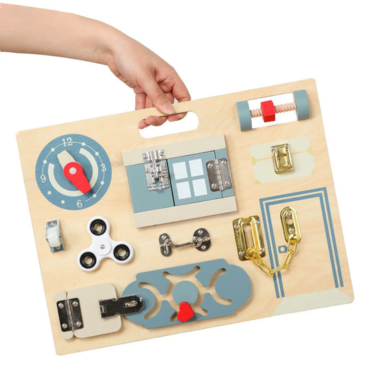 Wooden Montessori Busyboards Latch Lock Daily Skill Learning Education Busy Boards Children Training Cognition Interactive Toys