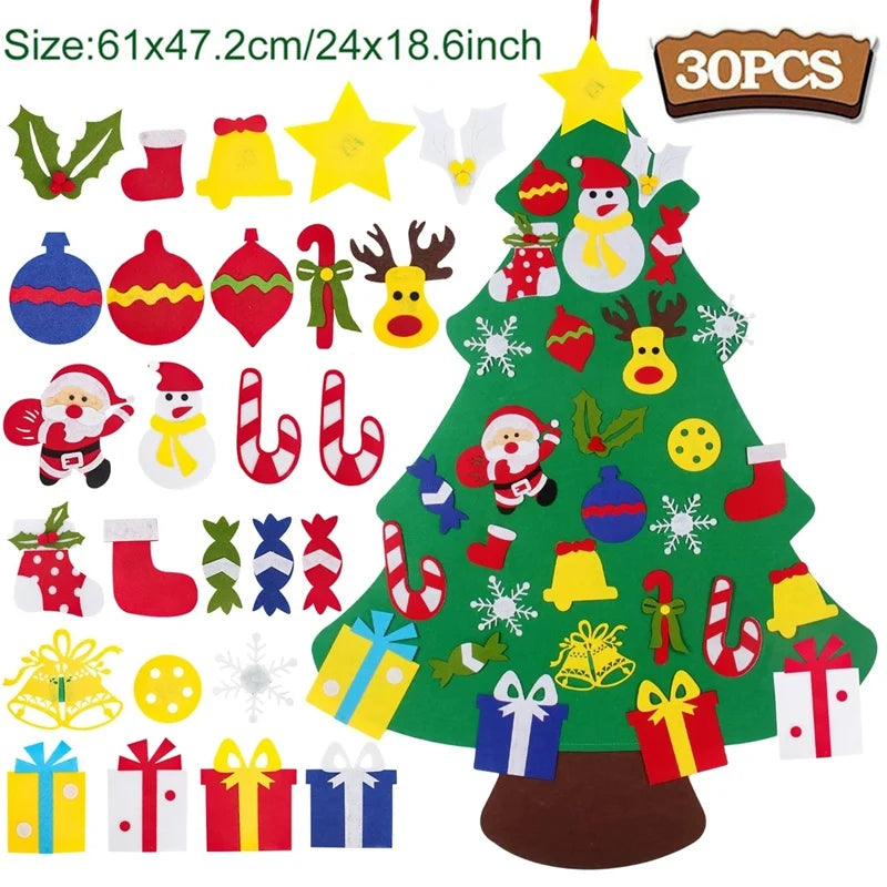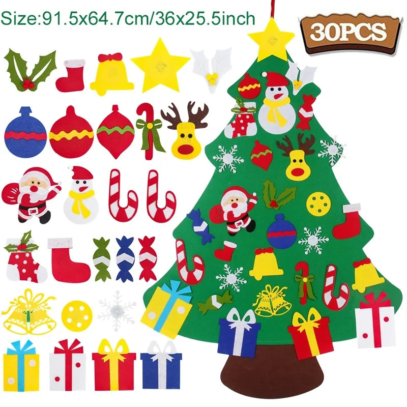 DIY Felt Christmas Tree Merry Christmas Decorations for Home 2024 Navidad Xmas Tree with Light Christmas Ornaments New Year Gift